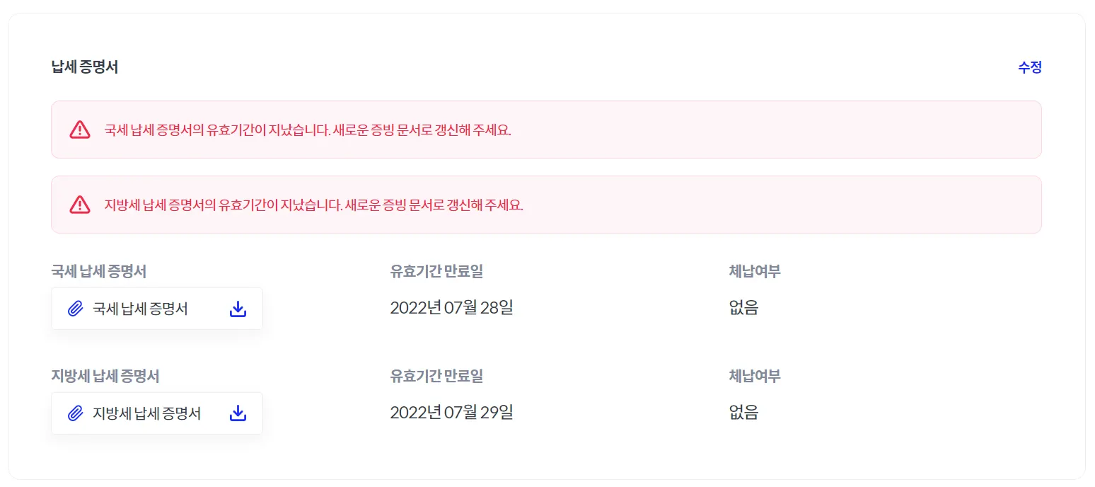 ※ 사업자 등록증은 기본정보에서 제출 가능합니다.