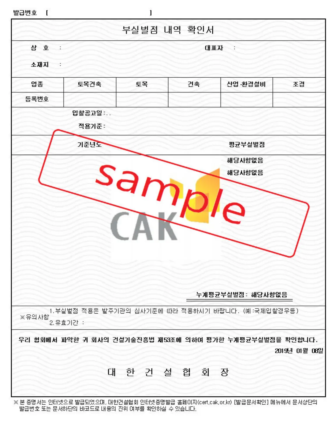 ※ 부실벌점 내역 확인서는 ‘대한건설협회’에서 발급한 서류로 제출 부탁드립니다.