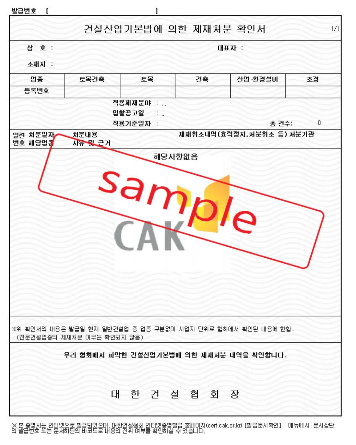제재처분 확인서(대한건설협회/키스콘)