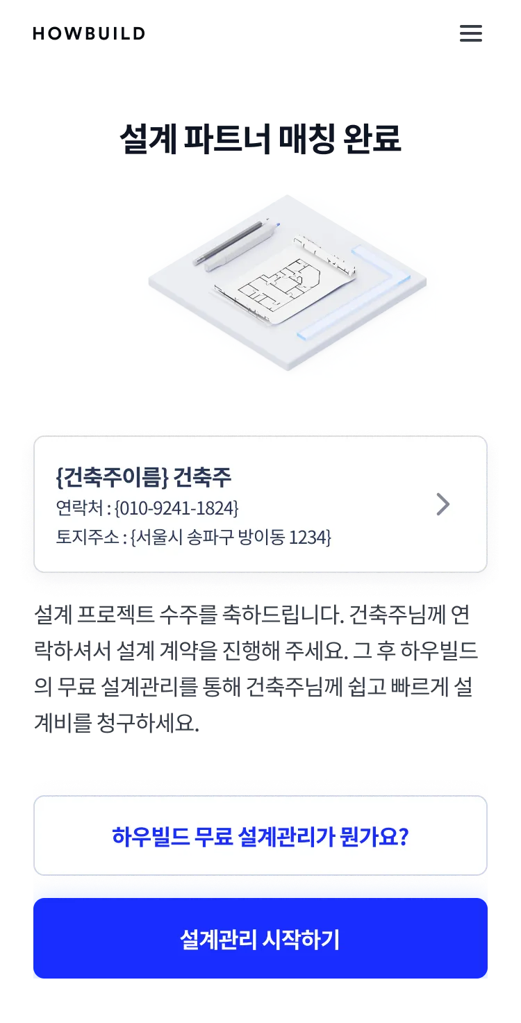 설계 진행 중에 하우빌드 공사 관련 서비스나 팁을 받아볼 수 있어요.