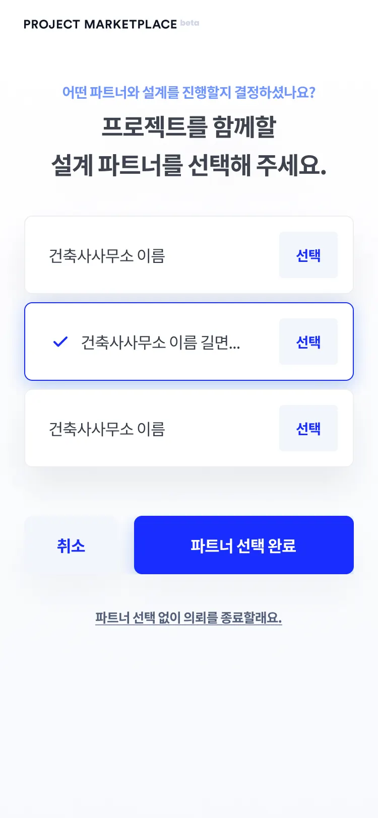 2. 프로젝트를 함께 진행하고 싶은 건축사를 골라주세요.