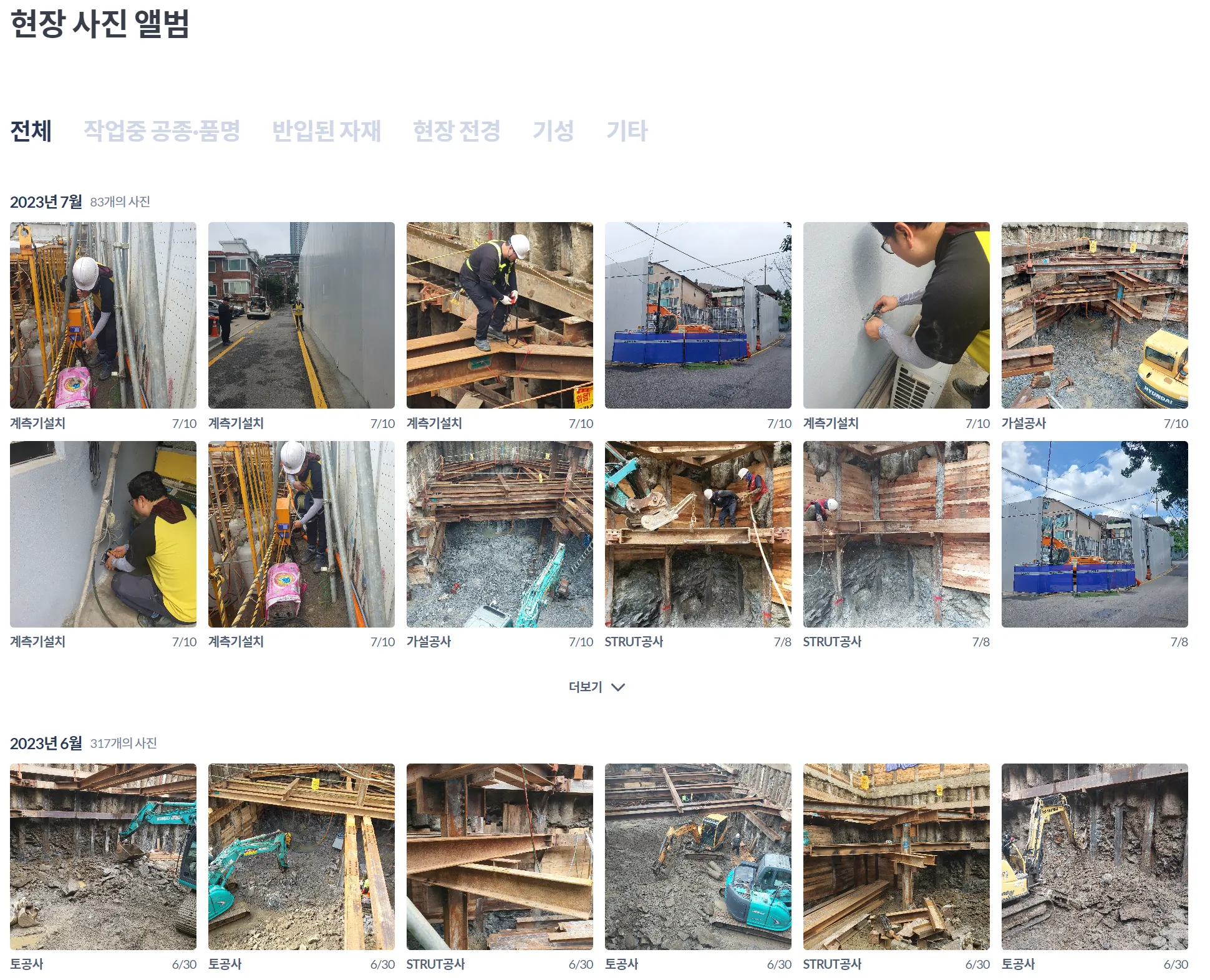 더불어 앞서 건설사가 입력한 내역을 바탕으로 오늘 무슨 작업을 했는지, 내일 무슨 작업을 할건지 등 ‘공정 보고서’를 현장소장이 작성하게 됩니다. 매일 공사진행 상황과 반입된 자재, 현장 전경도 사진으로 찍어 올리게 되죠. 이를 통해 공사가 어느 정도 진행되었는지 공정률도 확인이 가능하며, 추후 공사한 내역 만큼만 공사비가 청구될 수 있도록 합니다.
